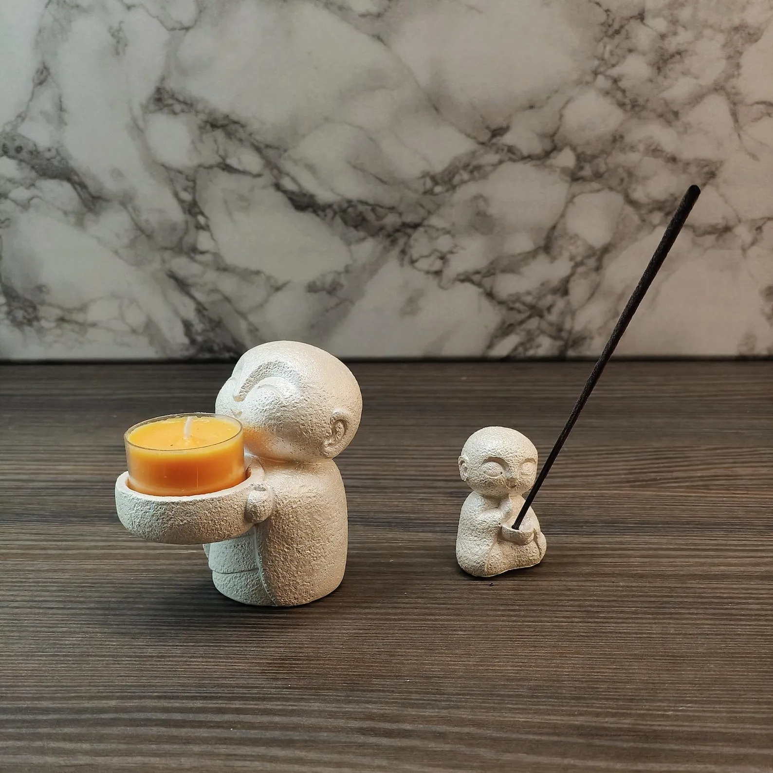 Set of 2 Buddhist Monk Candle Holders & Incense Stand – Zen Spiritual Decor Gift.