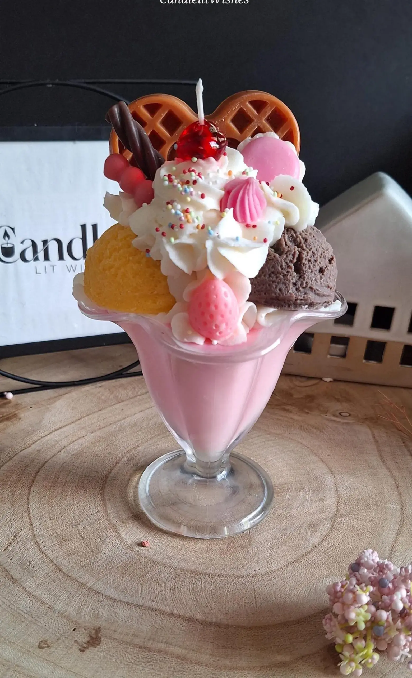 Waffle Ice Cream Candle Makassar Ebony Scented Dessert Food