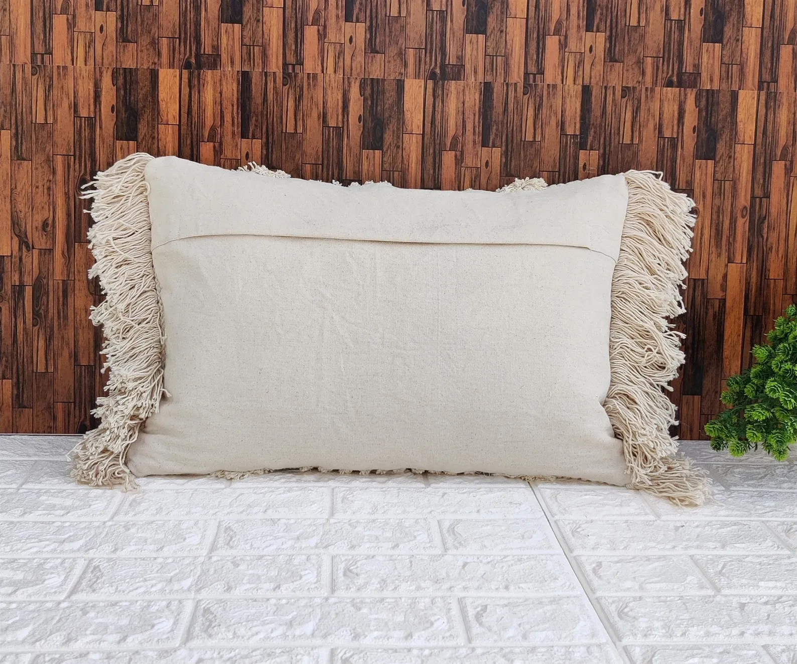White Textured Fringe 14×20 Inches Cotton Pillow Cover