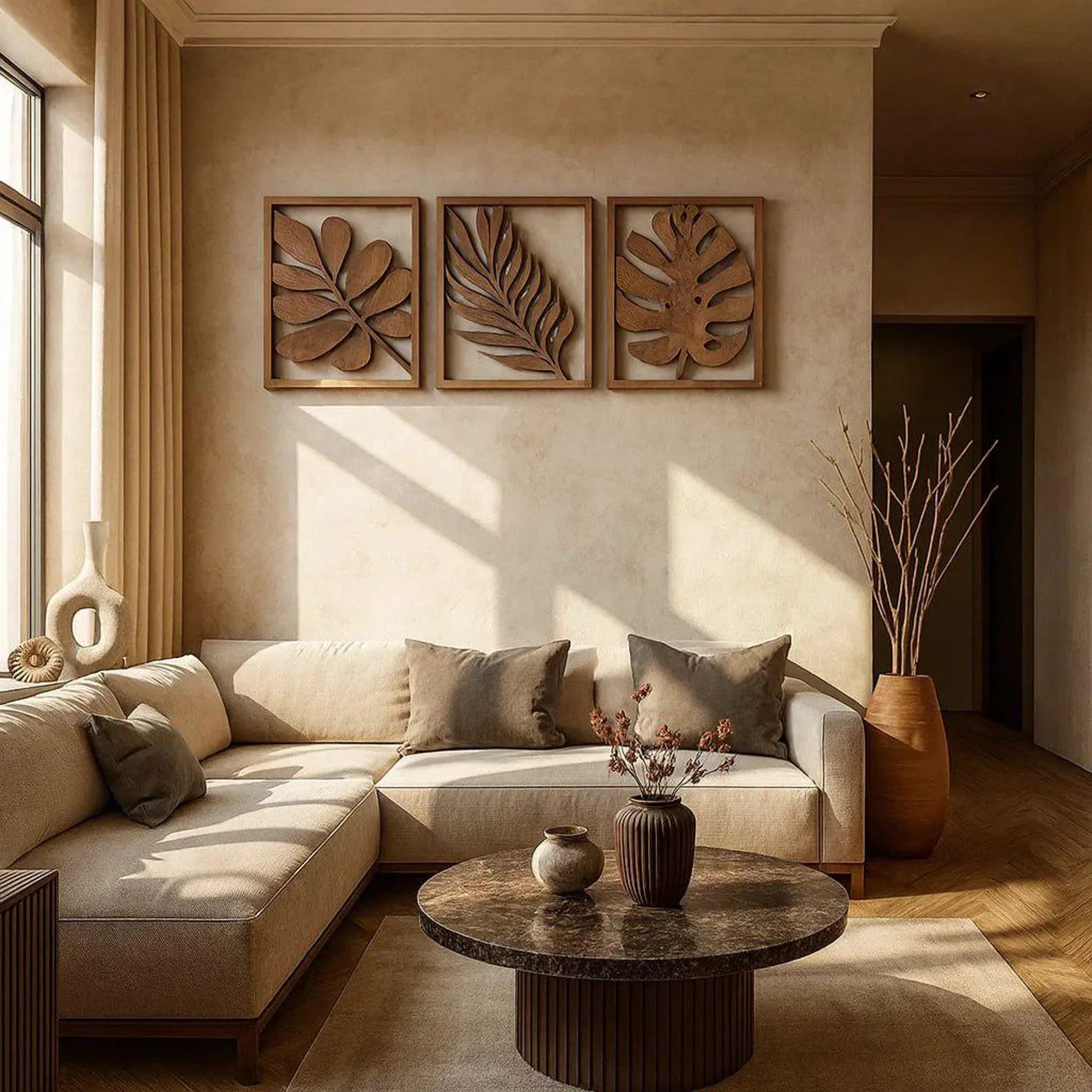 Wooden Leaf Wall Art: Set of 3 Rustic Botanical Panels