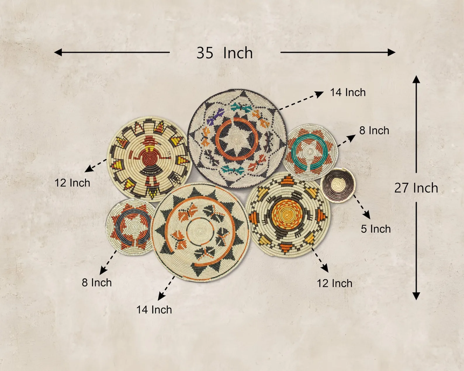 Set of 7 Boho Wall Basket Decor, Bohemian Wall Hanging