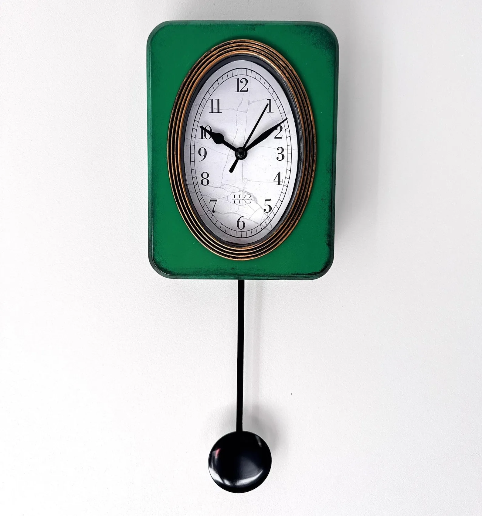 Vintage Oak Pendulum Clock, Green Shabby Chic Accent