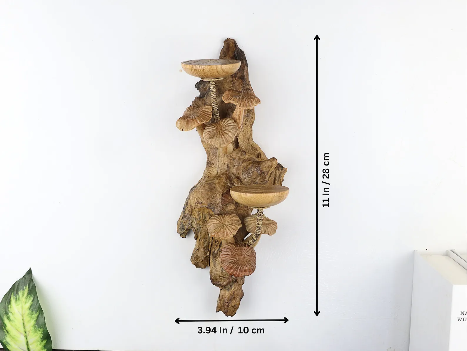 Wood Candle Holder Hanging Wall Art With Mushroom Carving, Wall Candle Holder