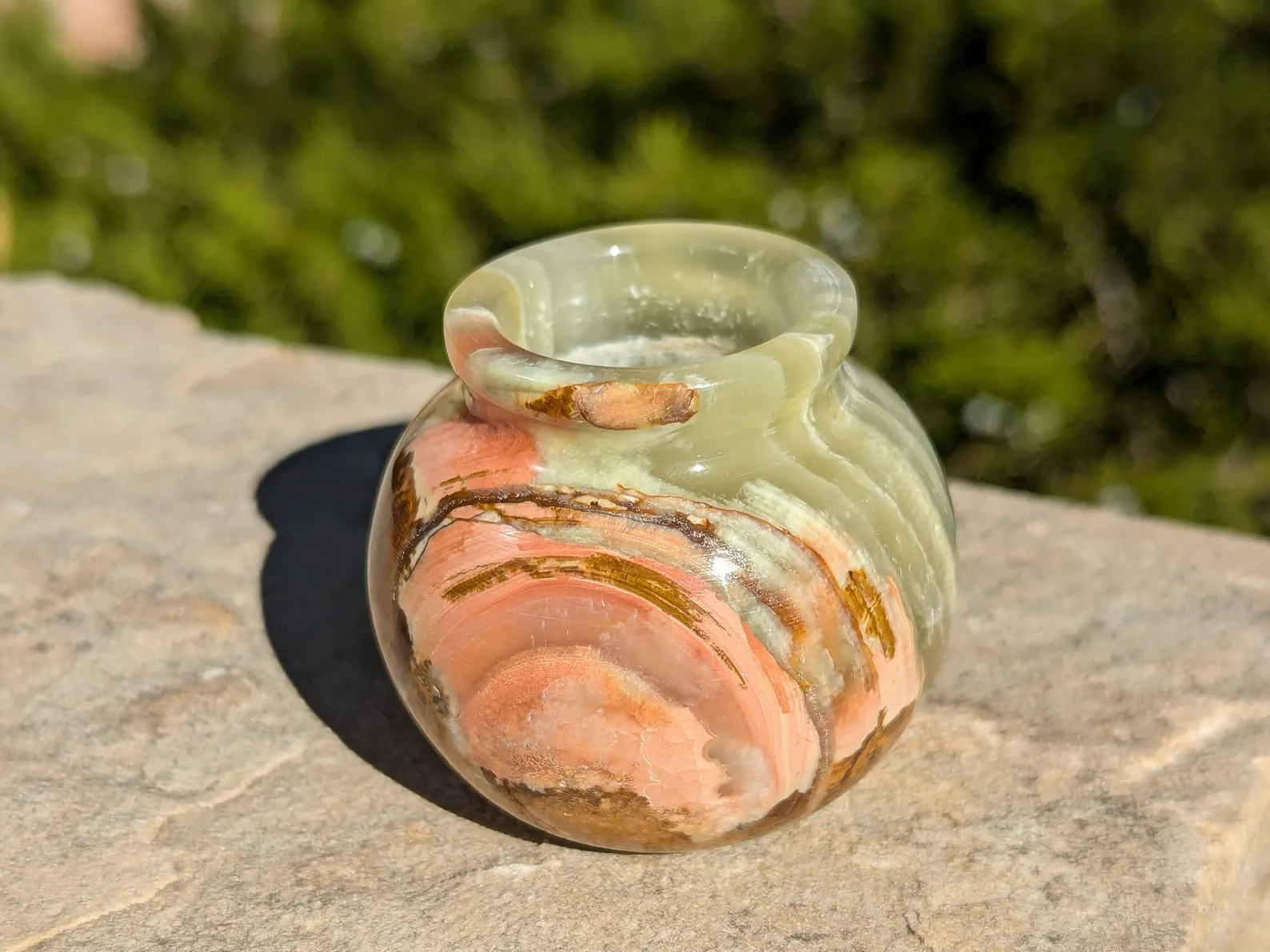 Beautiful hand carved onyx vase. Solid 2″x2″ vase.