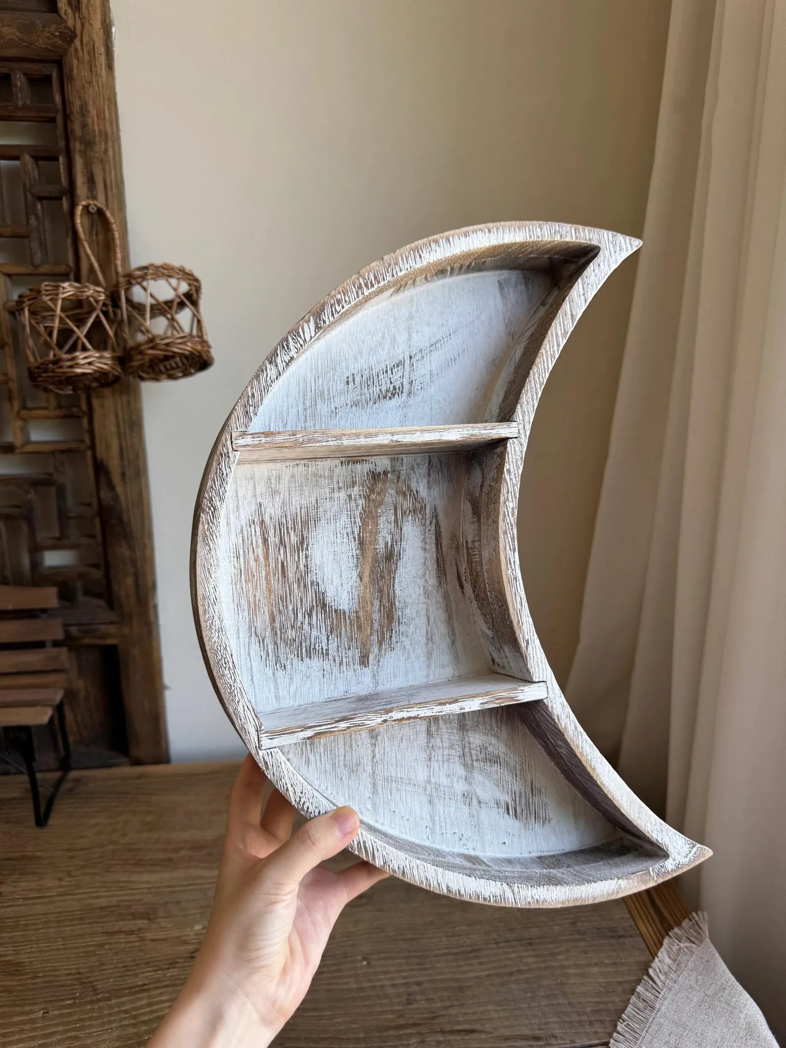 Handmade Moon Wooden Tray Shelves: Vintage Rural Home Decor