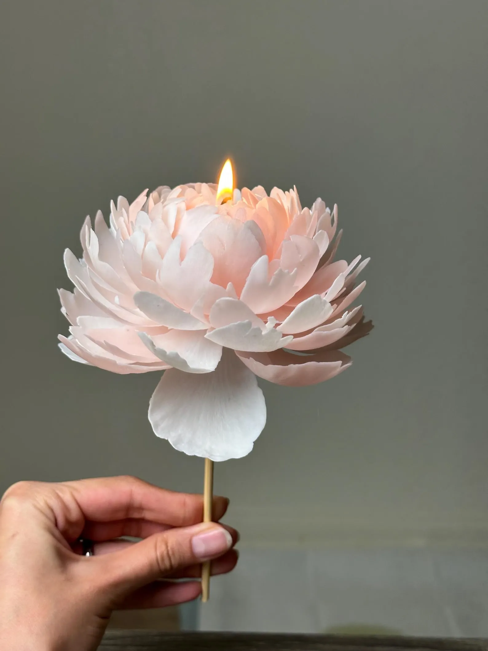 Handmade peony beeswax candle sculpted to look like a realistic blooming flower. Perfect as a floral home decor accent, eco-friendly gift for her, weddings, birthdays, or special occasions.