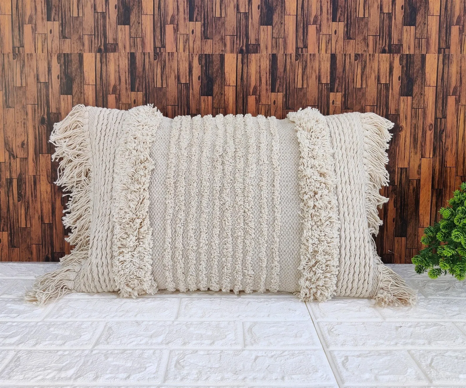 Be the first to review “White Textured Fringe 14×20 Inches Cotton Pillow Cover”