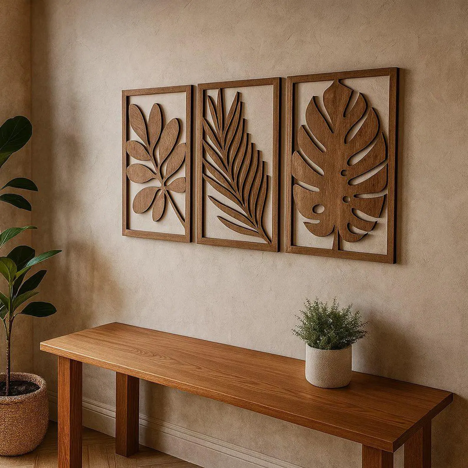 Set of 3 panels – unique tropical leaf designs (monstera, palm, abstract leaf)